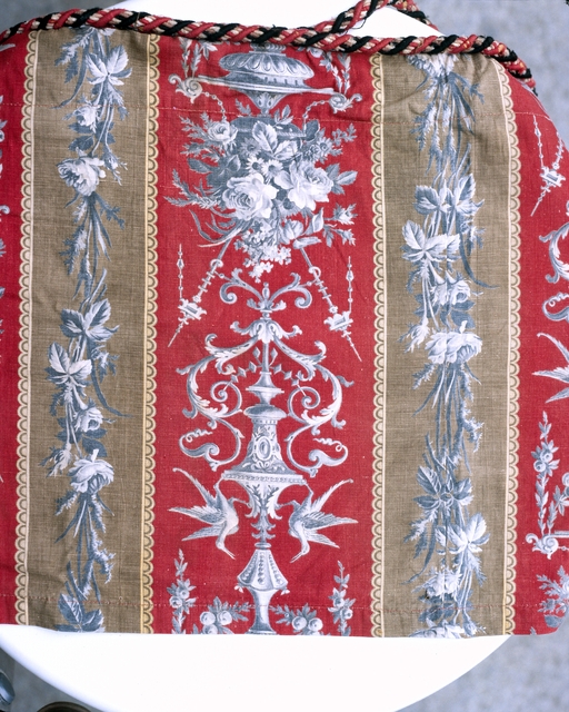 Chambre nord-ouest, détail du tissu d'origine rouge et vert.Immatriculation