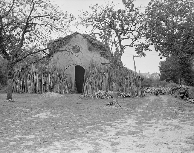 Vue du bâtiment du bûcher à l'arrière des communs.Immatriculation