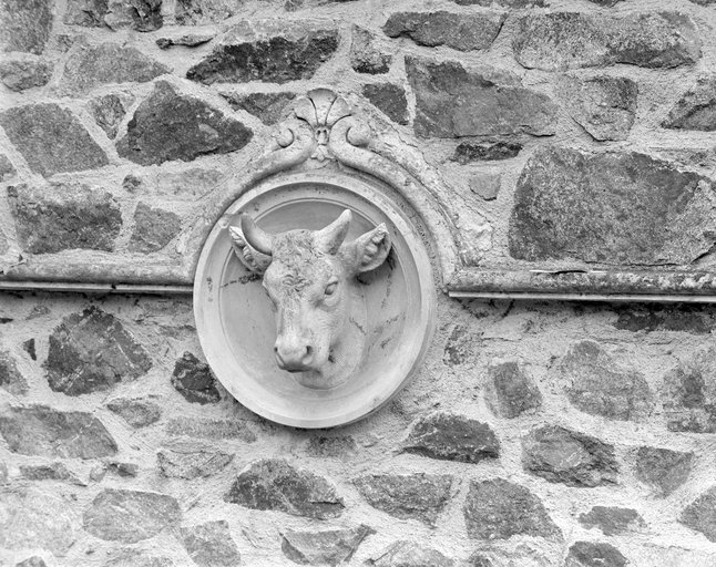 Communs : détail d'un médaillon, tête de boeuf.Immatriculation