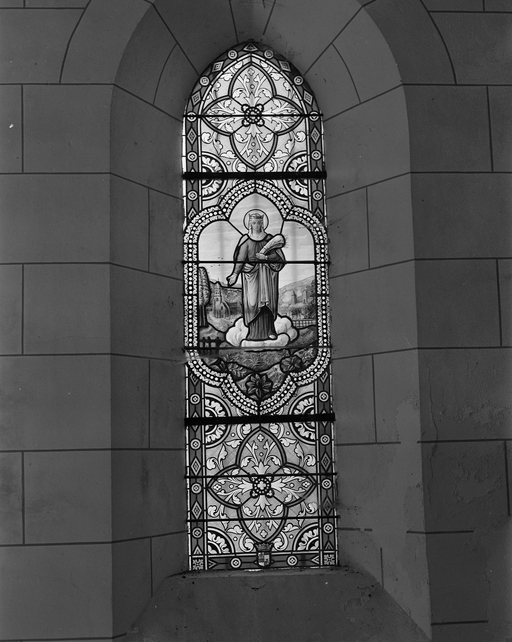 baie n°1 : Vierge portant gerbe de blé.Immatriculation