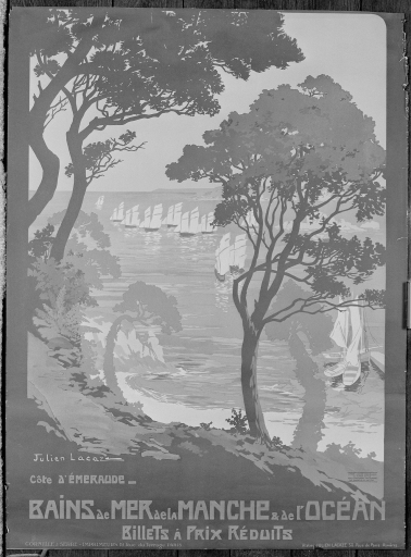 Bains de mer de la Manche et de l'Océan, affiche grand format, en couleur.Immatriculation