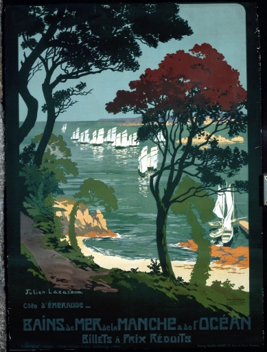 Bains de mer de la Manche et de l'Océan, affiche grand format, par Dorival, en couleur.Immatriculation