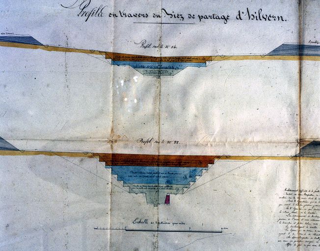 Profil en travers du bief de partage d'Hilvern, 30 mars 1825 : vue rapprochée (D. D. E. Morbihan, Pontivy)Immatriculation