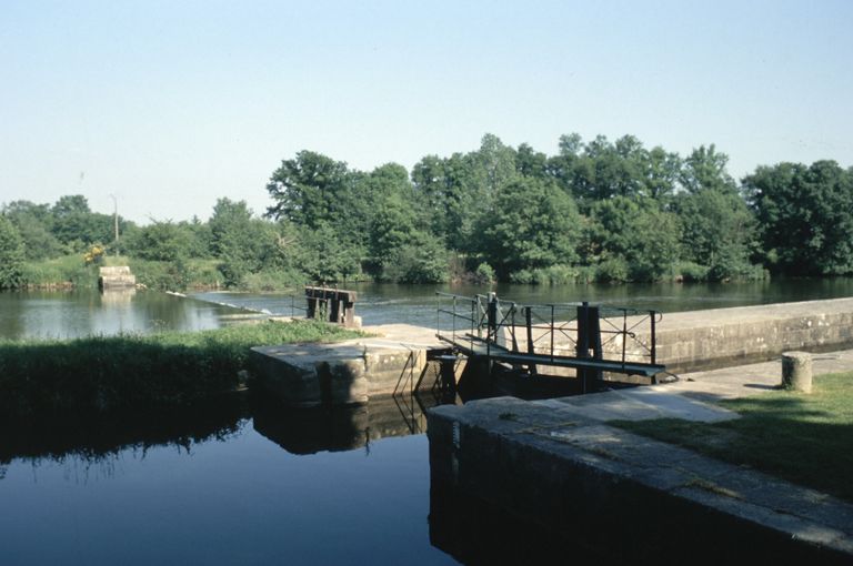 Site d'écluse : écluse, vanne et déversoir vus depuis l'amont (état en 1996)Immatriculation