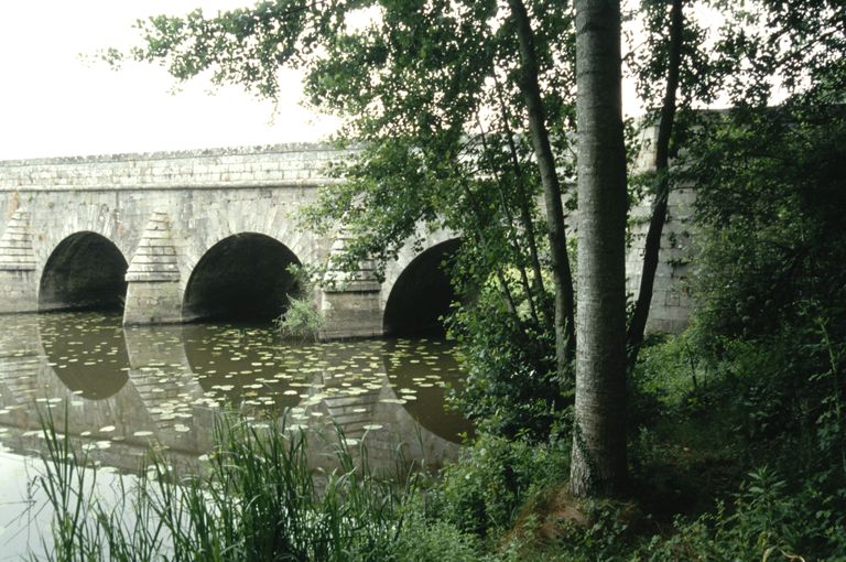 Canal de Nantes à Brest, pont routier, au bourg (Le Roc-Saint-André fusionnée en Val d'Oust en 2016),