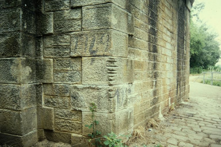 Pont de chemin de fer : pile, traces d'usures de cordageImmatriculation