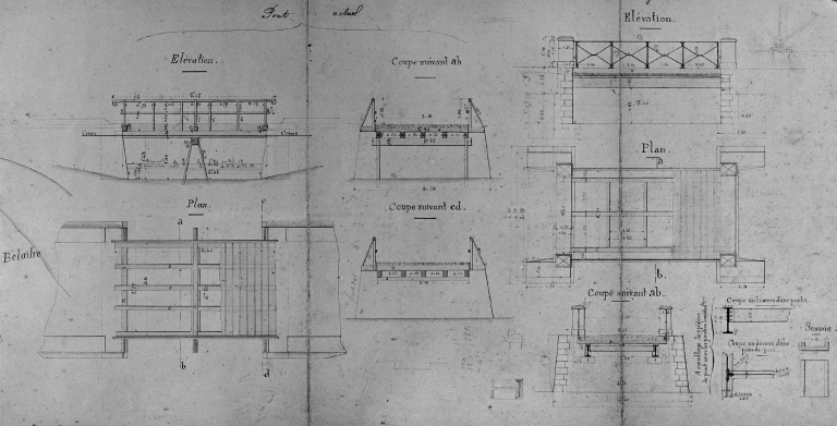Pont de Belaître, plan de 1885, détail : pont actuel et pont projetéImmatriculation