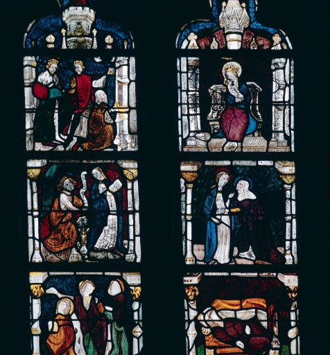 Verrière à personnages : Vie de la Vierge, Calvaire (baie 1),
