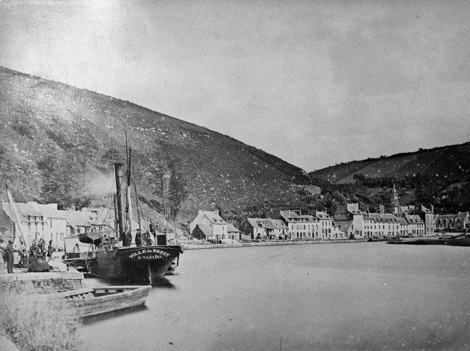 Vue générale du port et du quai Amiral Douguet. Photographie, vers 1900 (Coll. direction départementale de l'Equipement. Morbihan. Subdivision de Pontivy)Immatriculation