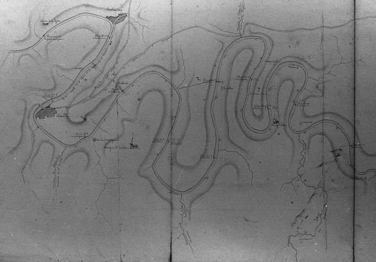 Plan du canal de Nantes à Brest dans sa traversée du Finistère (1842, 2ème feuille) : entre Port-Launay et Pont Coblant (DDE Morbihan, Pontivy)Immatriculation
