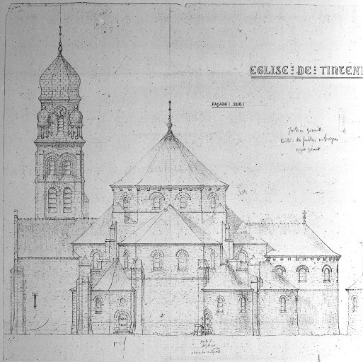 Projet pour l'église de Tinténiac : élévation de la façade sud, dessin par Arthur RegnaultImmatriculation