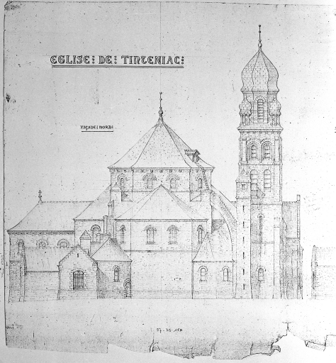 Projet pour l'église de Tinténiac : élévation de la façade nord, dessin par Arthur RegnaultImmatriculation