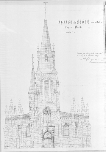 Coupe sur la diagonale de l'hexagone regardant le clocher, 1891Immatriculation