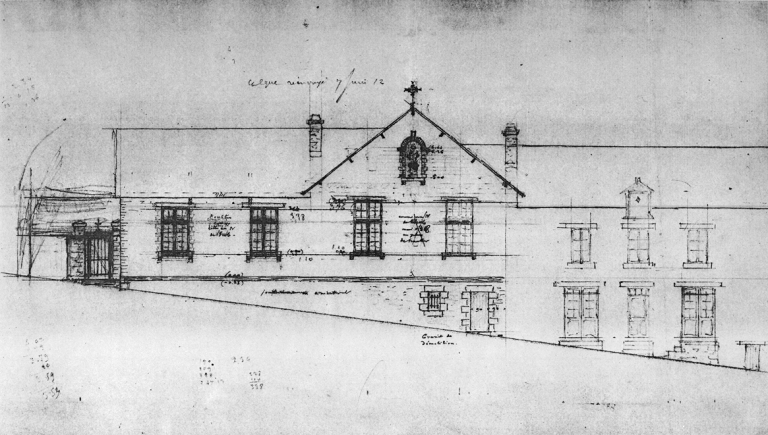 Plan définitif(?) de la salle d'asile dressé le 7 juin 1912 : élévation sudImmatriculation