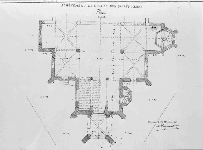 Achèvement de l'église. Plan au sol, 1913 (A. D. Ille-et-Vilaine)Immatriculation