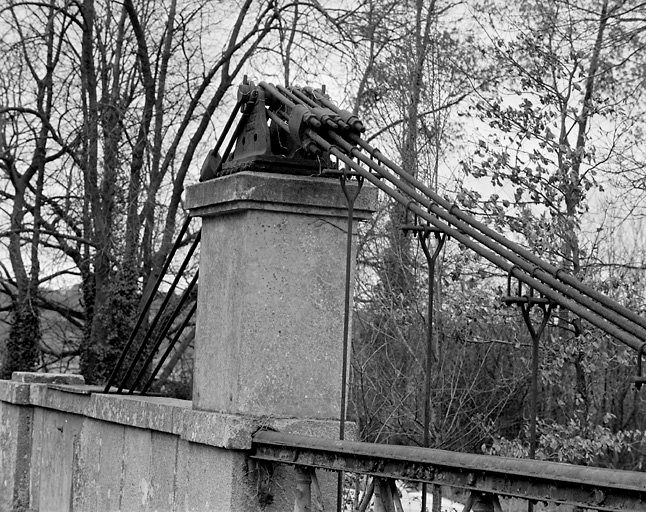 Culée : départ des cables sur les piliers de supportImmatriculation
