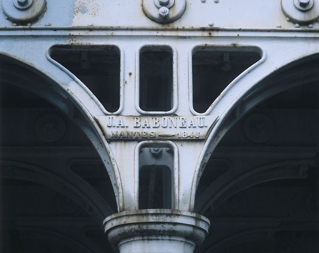 Elévation ouest : détail d'une pile portant la date et le nom du constructeurImmatriculation