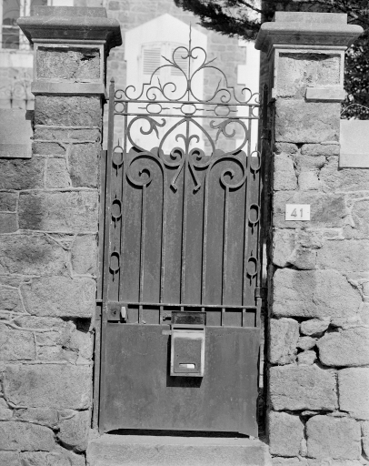 Saint-Malo. Villa Marianna, 41 chaussée du Sillon, détail du portillon en ferronnerie.Immatriculation