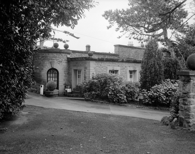 Vue générale de la façade d'entrée de la maison du gardien.Immatriculation
