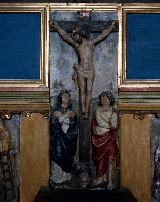 Panneau sculpté de la Cruxifixion, vue générale.Immatriculation
