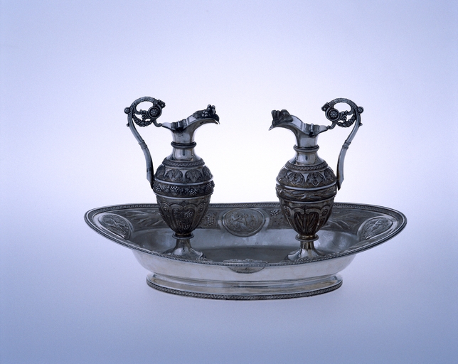 Calice, patène, clochette, bassin à burettes, burettes (chapelle), église paroissiale Saint-Pierre, Saint-Paul (Montreuil-sous-Pérouse),