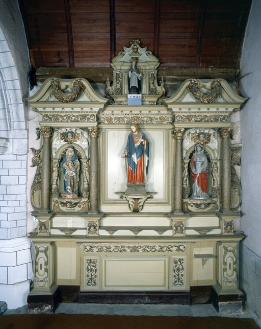 Autel, retable (autel secondaire, retable architecturé à niche), du Sacré Coeur, église paroissiale Saint-Martin (Balazé),