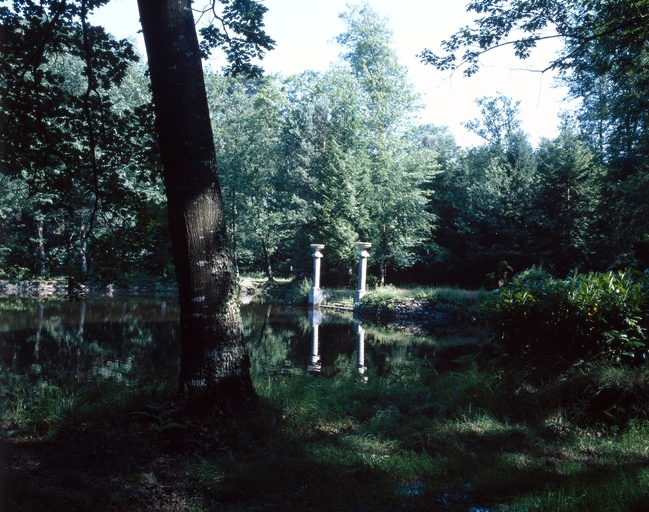 Vue générale de l'étang avec les colonnes.Immatriculation