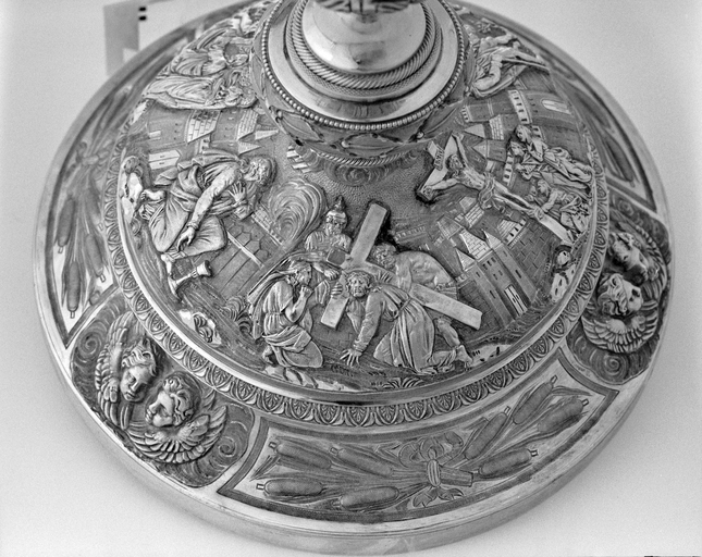 Calice, patène, clochette, bassin à burettes, burettes (chapelle), église paroissiale Saint-Pierre, Saint-Paul (Montreuil-sous-Pérouse),