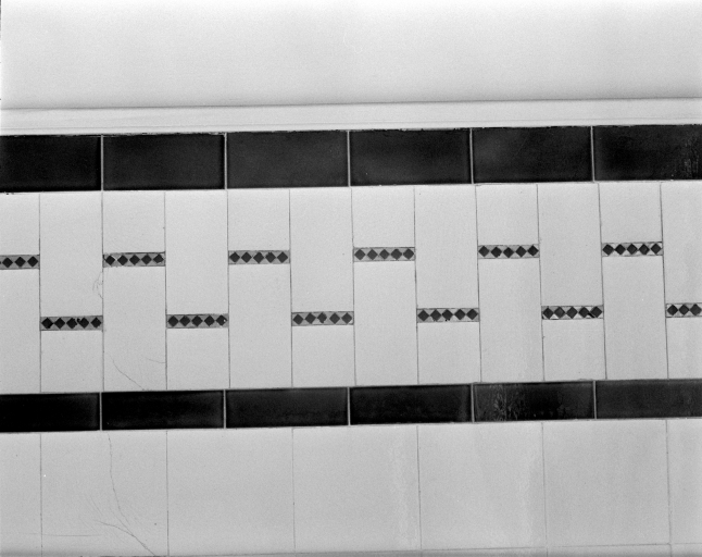 Détail frise en céramique de la salle de bains.Immatriculation
