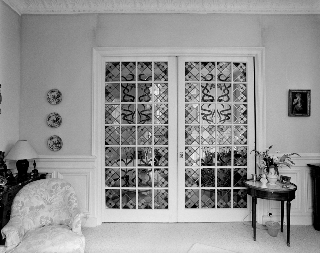 Vue d'ensemble de la pièce avec la cloison coulissante en vitrail fermée.Immatriculation