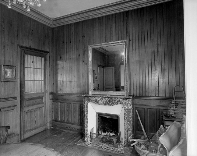 Vue générale de la cheminée de la salle à manger.Immatriculation