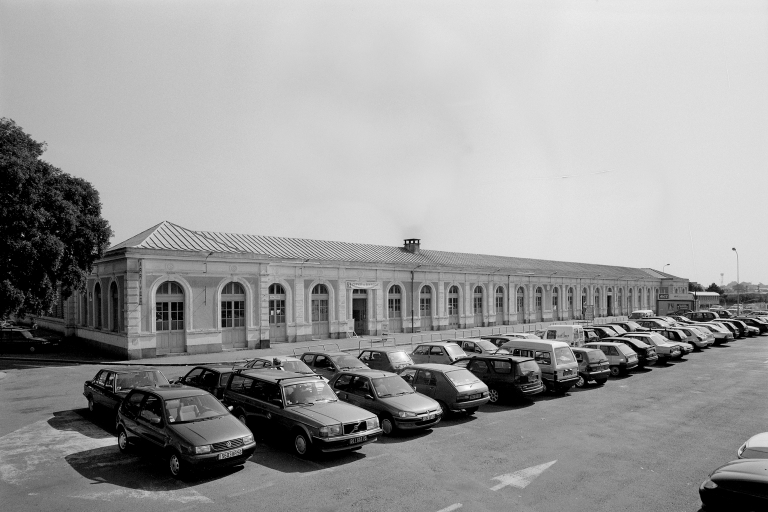 Vue générale extérieure de la gare côté parking.Immatriculation