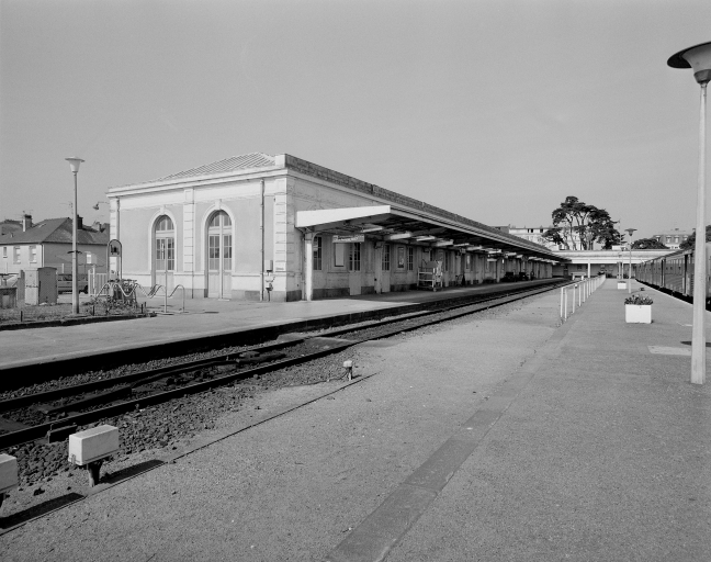 Vue générale extérieure de la gare côté quais.Immatriculation