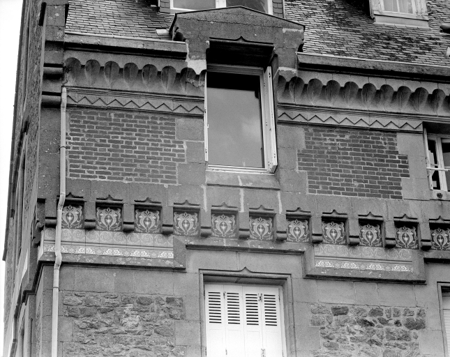 Détail frise décorative et corniche.Immatriculation