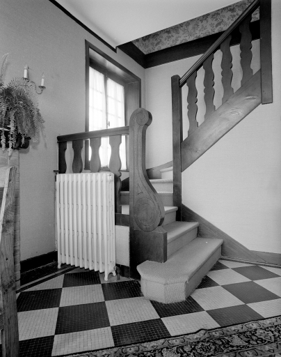 Vue de départ d'escalier au rez-de-chaussée.Immatriculation