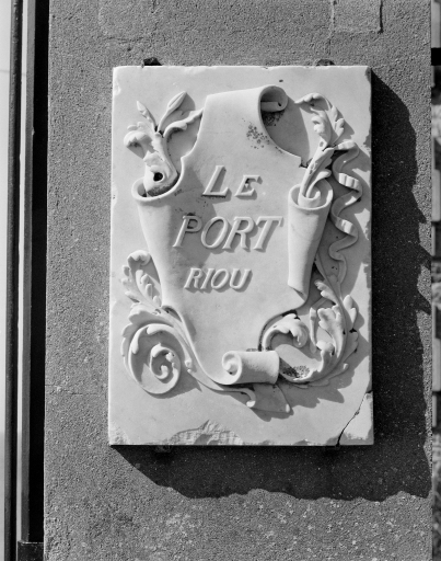 Vue générale de la plaque Le Port-Riou, près du portail d'entrée.Immatriculation