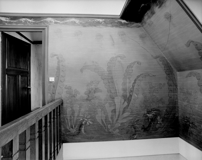 Peinture de la cage d'escalier fond marin au deuxième étage.Immatriculation
