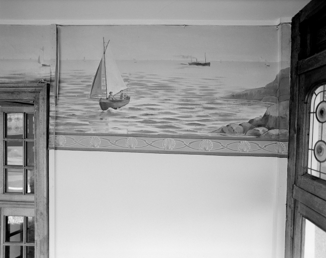 Bow-window, vue générale toile peinte décor marin.Immatriculation