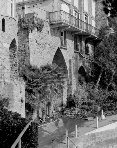 Vue générale sud-ouest rapprochée de la façade postérieure de la villa Miramar prise de profil avec contrefort.Immatriculation