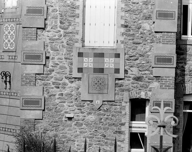 Logis, façade Sud, céramique, appui de fenêtre.Immatriculation