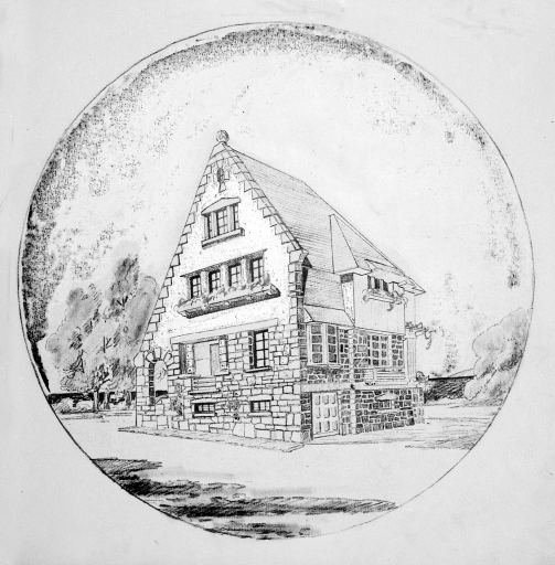 Projet de villa n°2/150, élévation de façades, vue prise de 3/4.Immatriculation