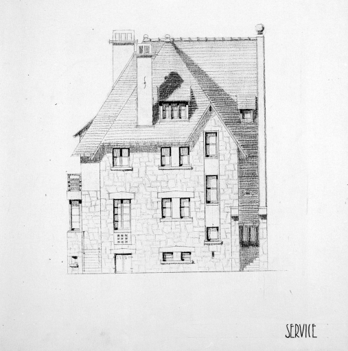 Projet de villa n°2/150, service, élévation de façade.Immatriculation