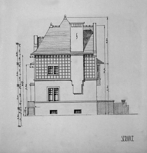 Projet de villa n°4, service, élévation de façade.Immatriculation