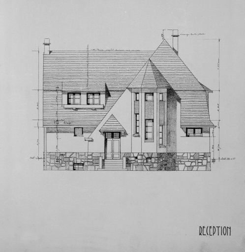 Projet de villa n°7, lot 23, élévation de la façade principale, réception.Immatriculation