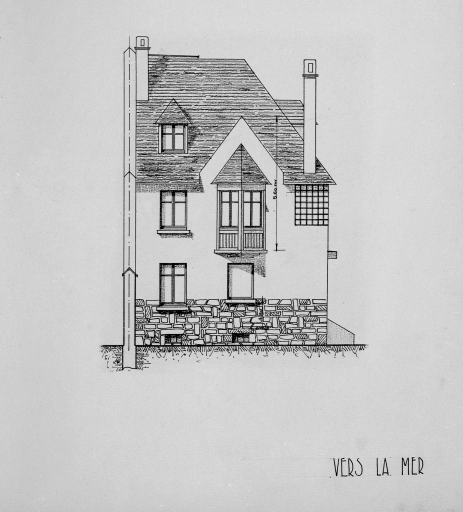Projet de villa n°9 et 10, élévation de façade vers la mer.Immatriculation