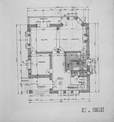 Projet de villa (non numéroté), plan du rez-de-chaussée.Immatriculation