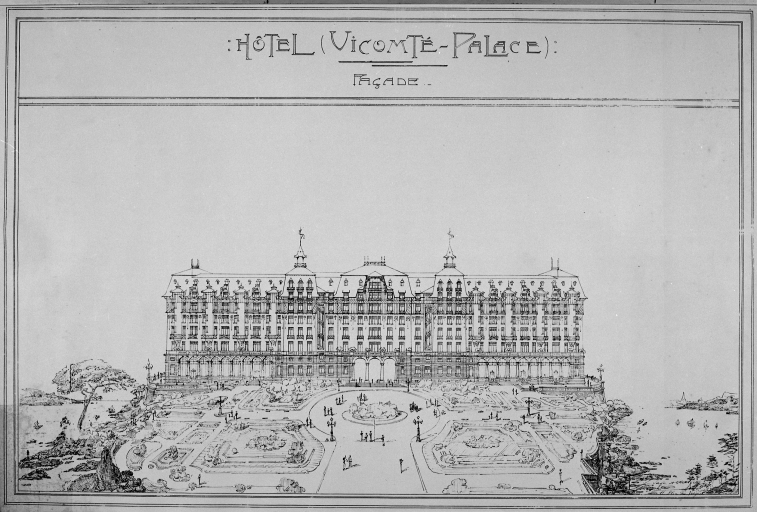 Hôtel (Vicomté Palace) façade sur jardin, projet.Immatriculation
