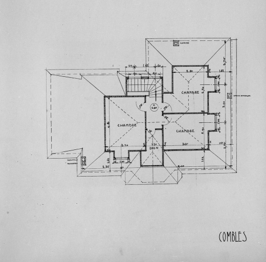 Projet de villa n°3, plan des combles.Immatriculation