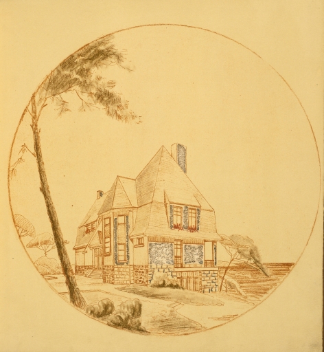 Projet de villa n°7, lot 23, perspective, élévation de façade de 3/4.Immatriculation