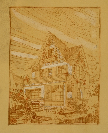 Projet de villa n°8, élévation façade principale.Immatriculation